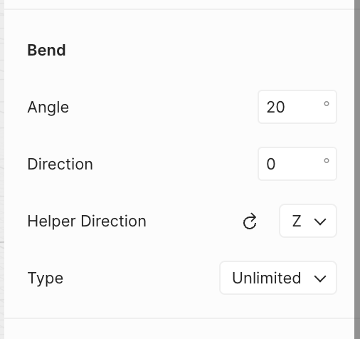 Apply bend to left by +20° or right by applying -20° or vice versa.